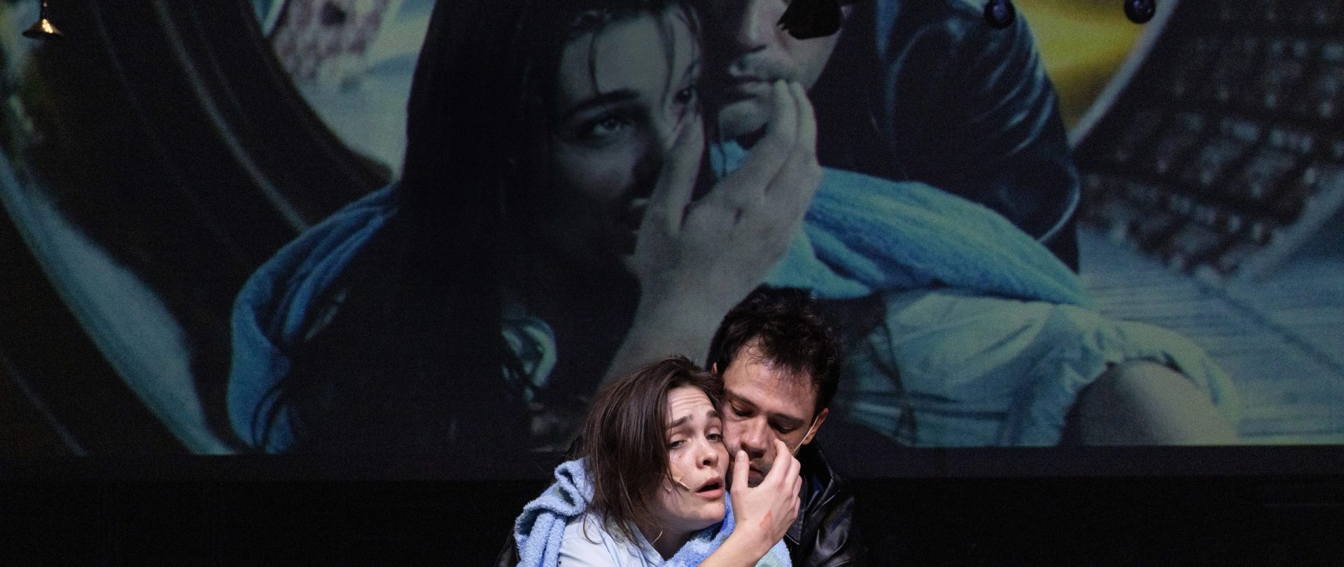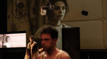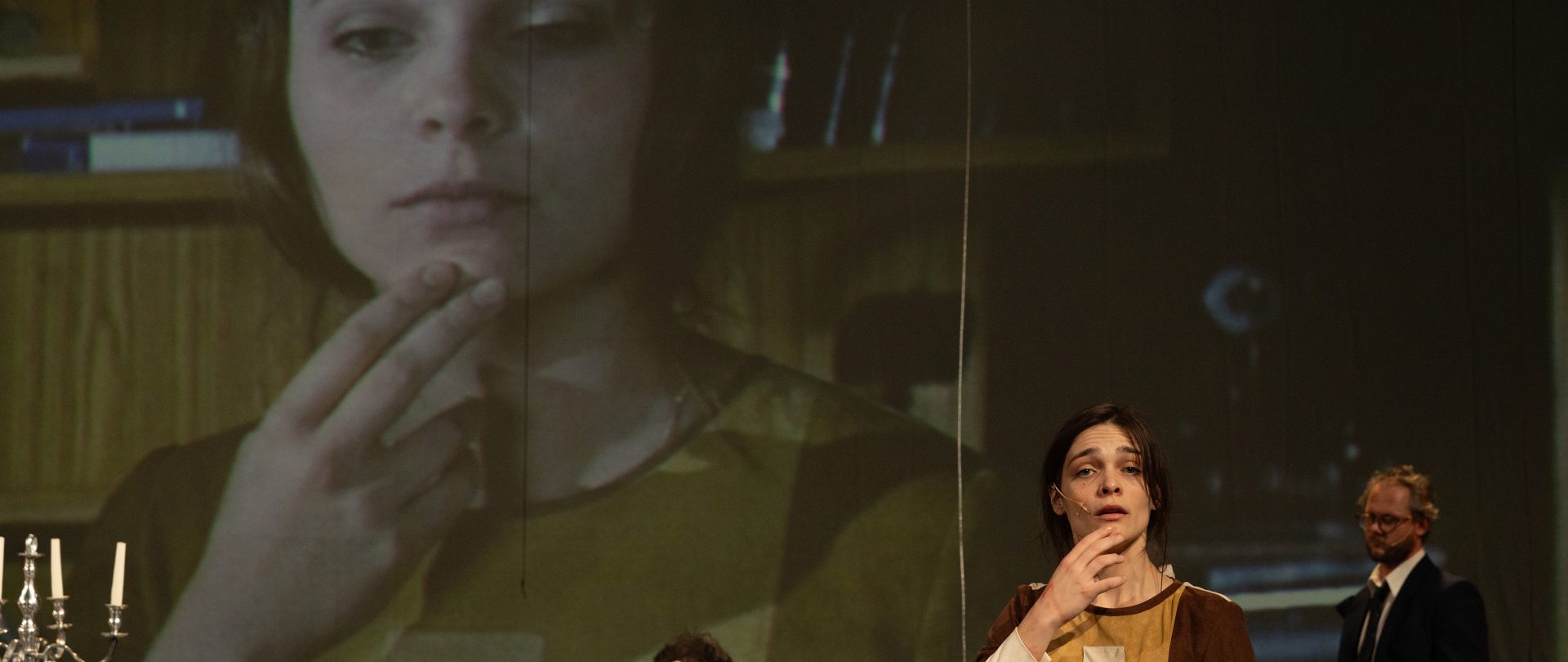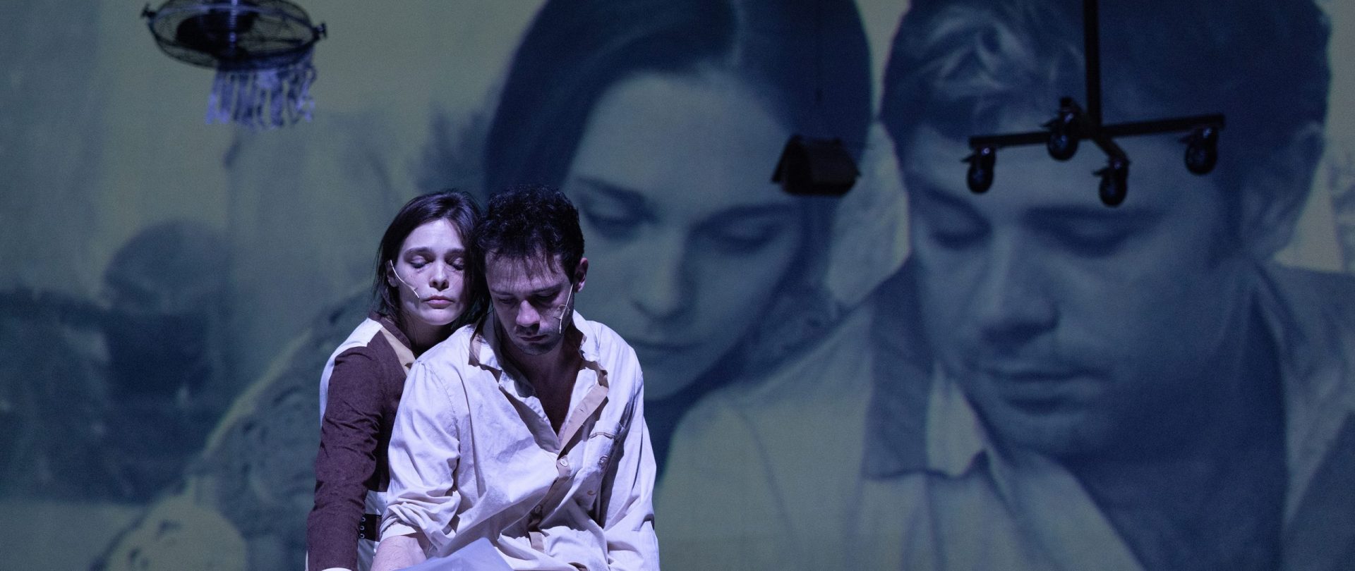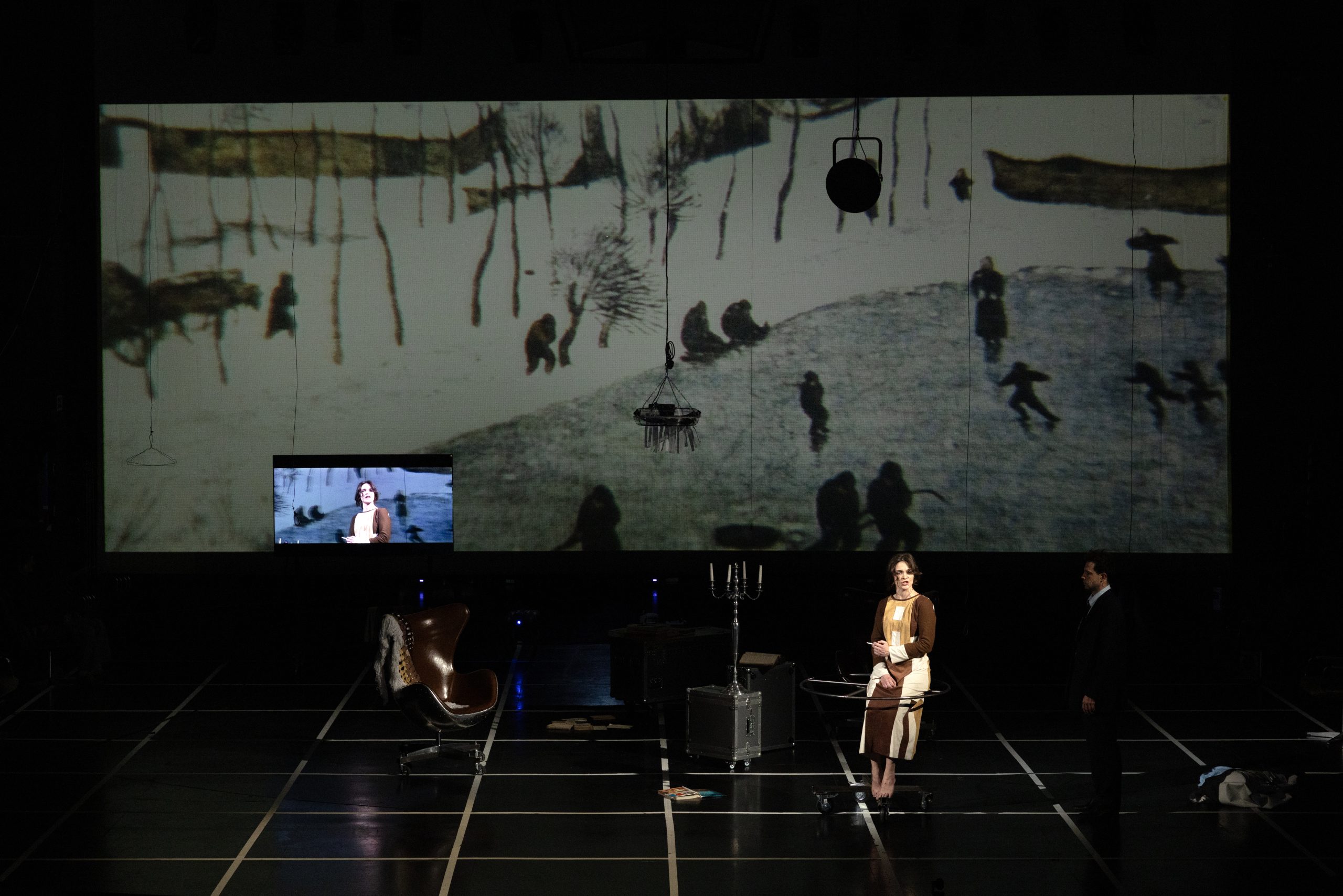 Ovdje je film partitura. Predstava u realnom vremenu uspostavlja tri prisutnosti: originalni film Andreja Tarkovskog, njegovu preciznu scensku rekonstrukciju i računalno generiranu fuziju koja nastaje između ta dva sloja. Film nije “u pozadini” niti služi kao citat – stalno je prisutan referent. Glumci, u istom vremenskom kodu, reproduciraju ritam, pokret i intonaciju filmskih likova, dok deepfake u pojedinim trenucima prelijeva identitet živog izvođača na filmsko tijelo. Tehnologija ovdje nije dodatak nego dramaturgija: dvojnik nastaje pred publikom, a samo gledanje postaje radnja – neprestano provjeravanje onoga što je uživo, onoga što je zapis i onoga što je sintetizirano.
