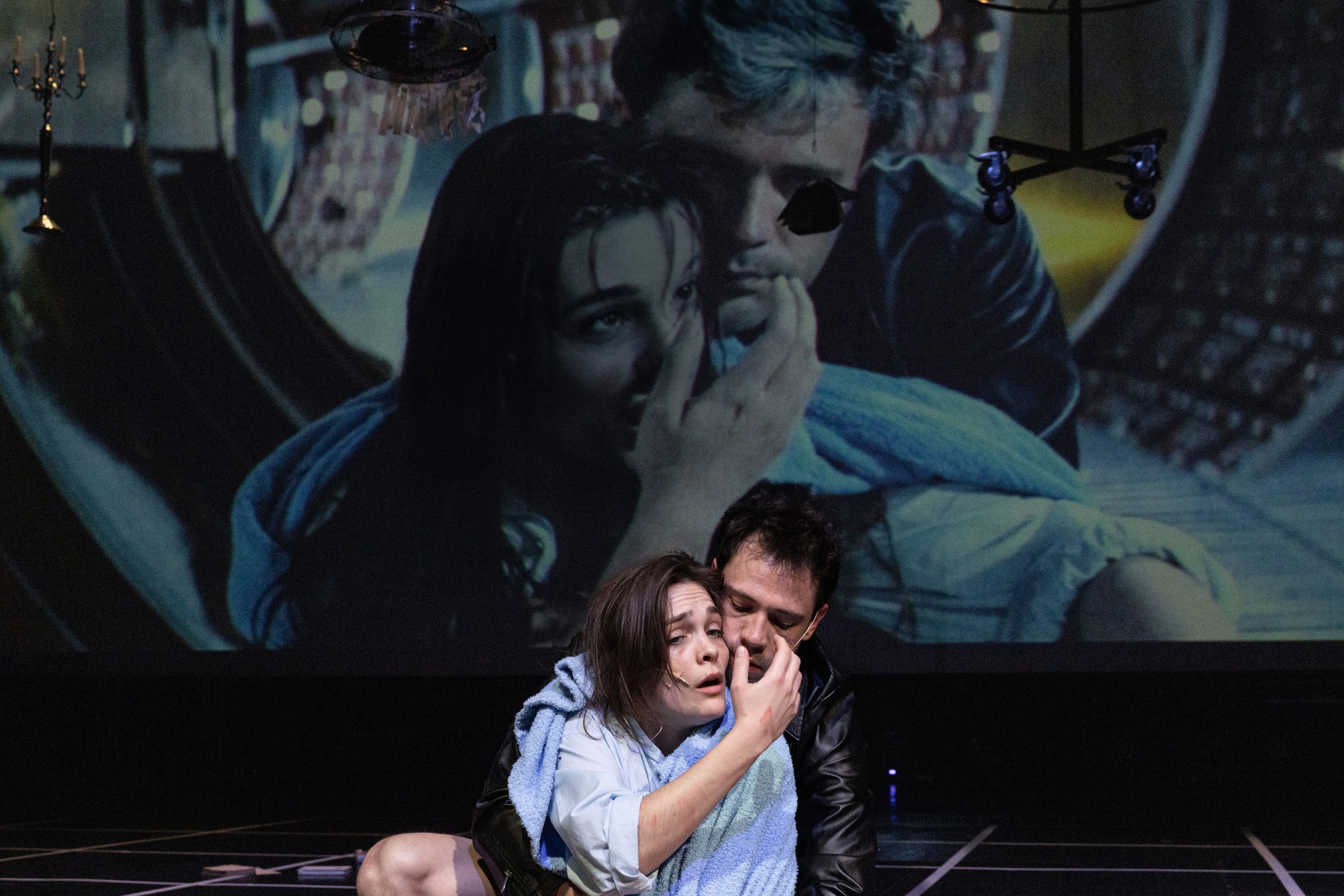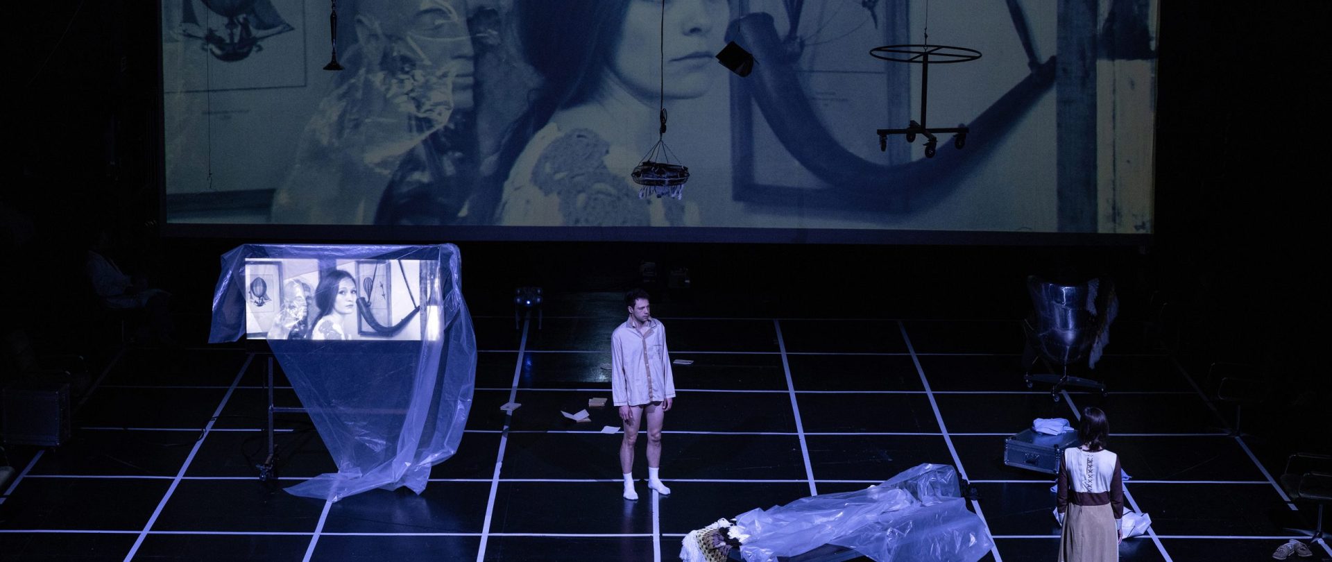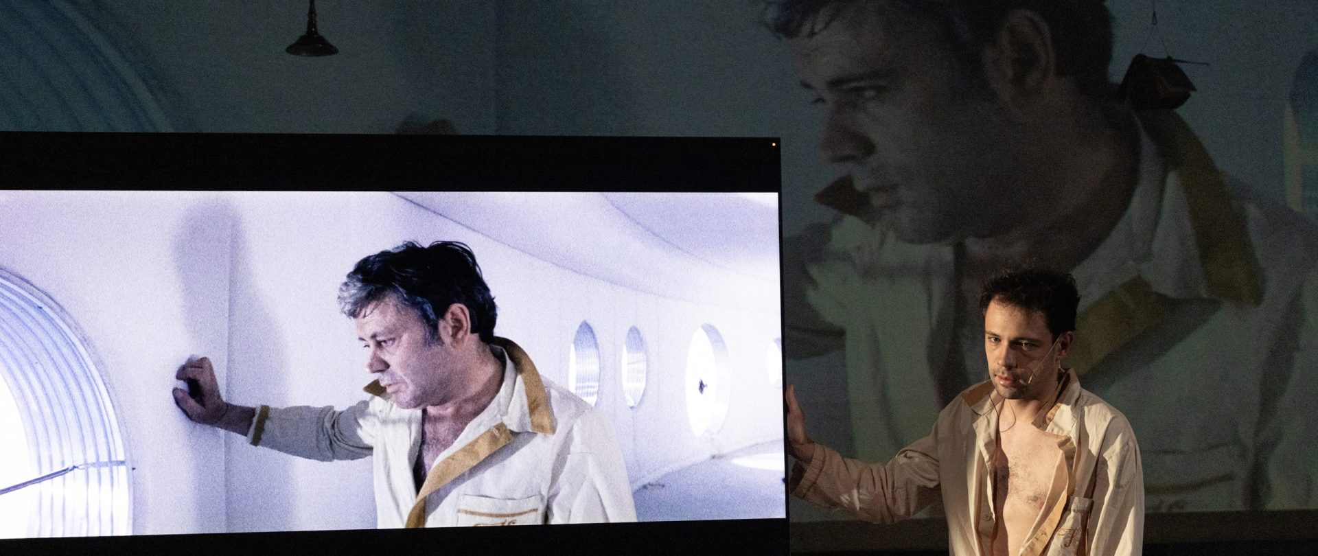 U središtu je psiholog Kris Kelvin (Matija Čigir). Suočen je s “gostima” – pojavama nastalim iz fragmenata sjećanja i nesvjesnog. Hari (Rea Bušić), dvojnica preminule partnerice, istodobno je opipljivo prisutna i radikalno nestvarna: tijelo je na sceni, dok deepfake povremeno “posuđuje” lice iz filmskog arhiva. U jednom trenutku susreću se tri Hari – filmska, kazališna i računalno generirana – i upravo u toj tankoj pukotini između medija događa se SOLARIS DVA.
