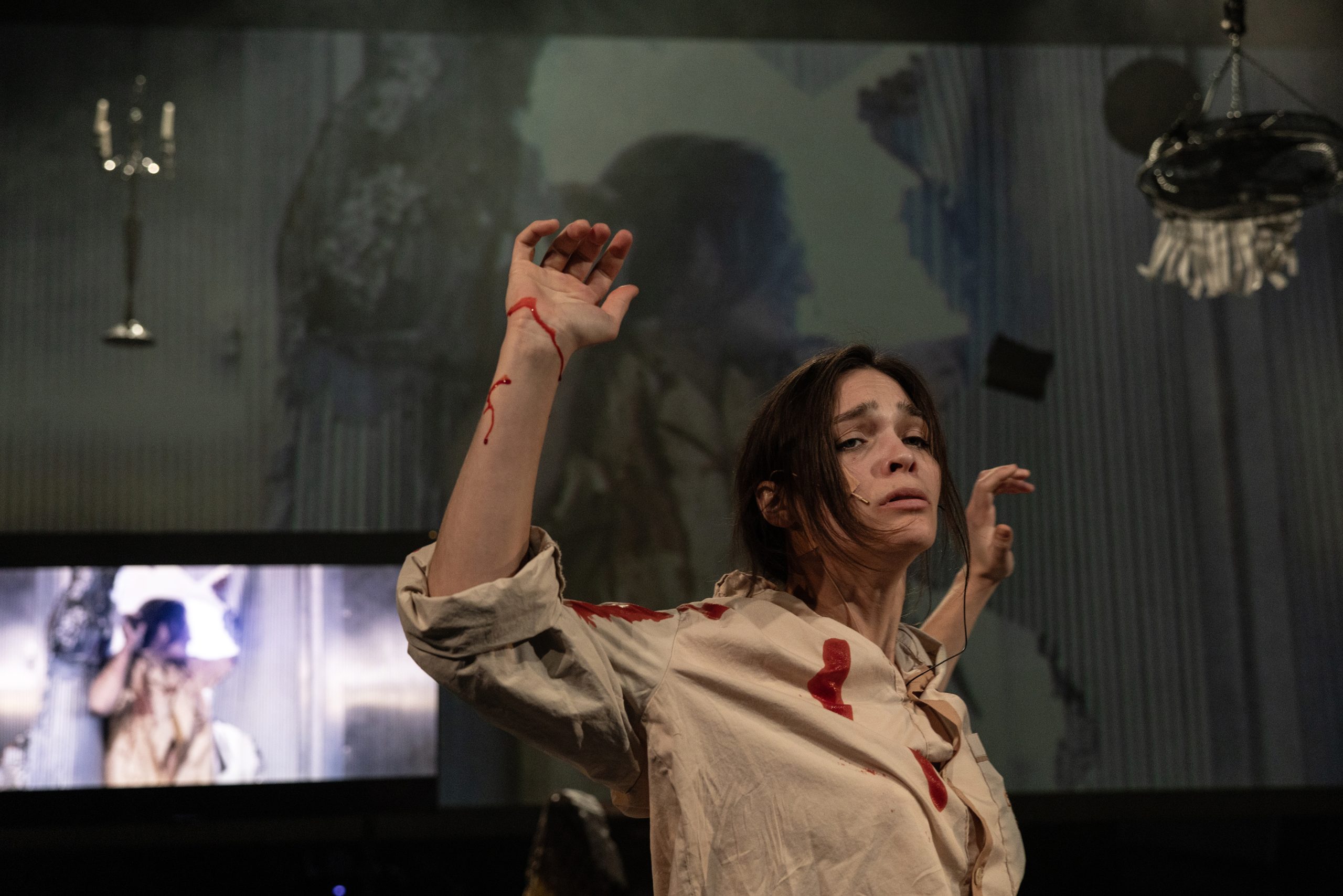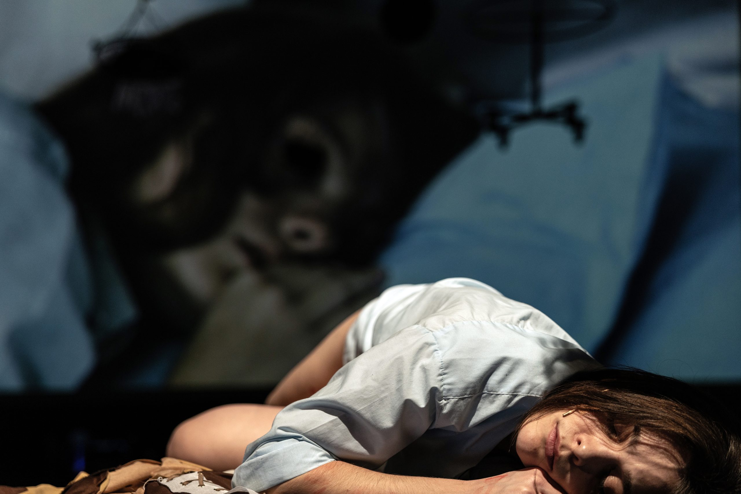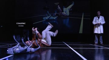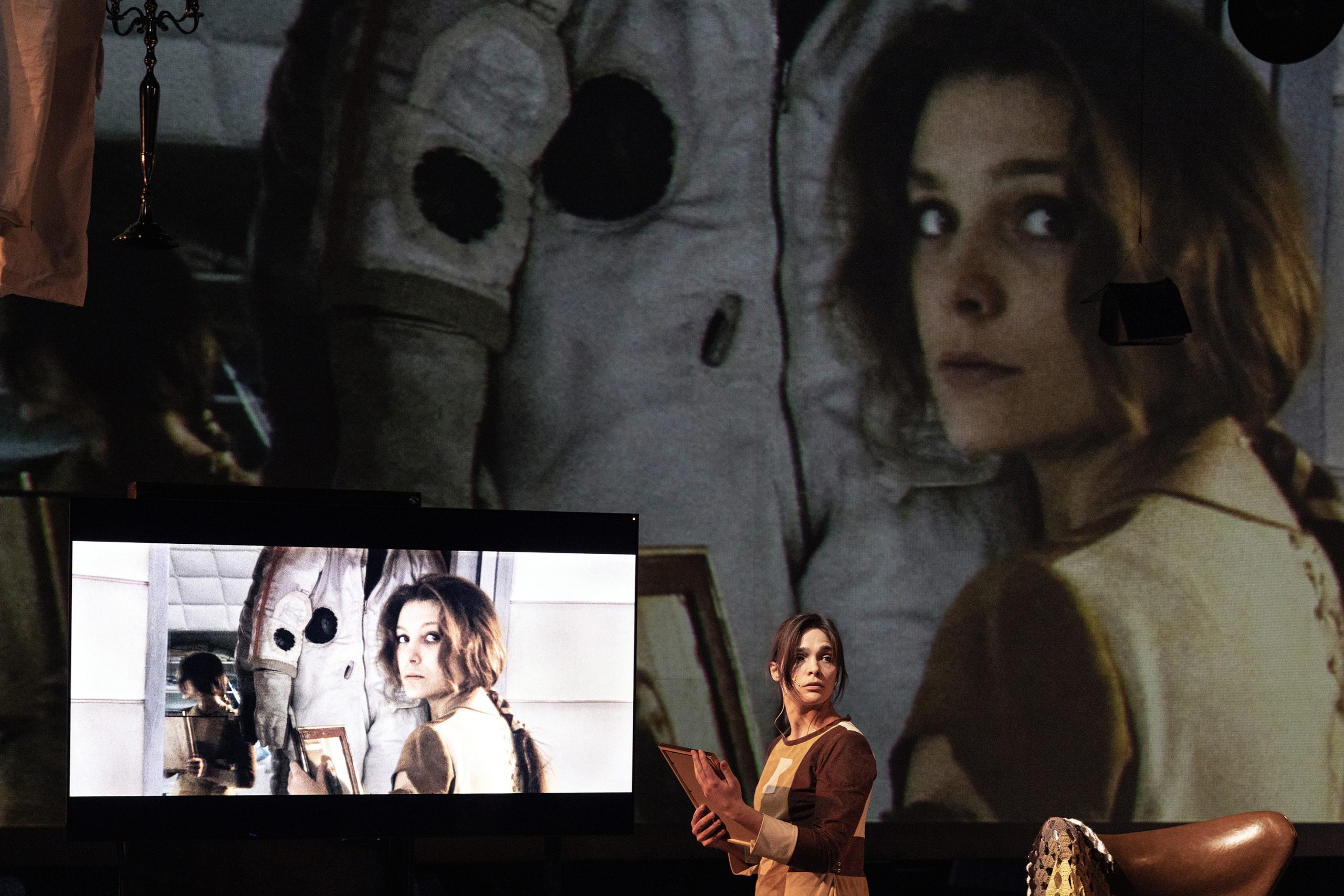 U središtu je psiholog Kris Kelvin (Matija Čigir). Suočen je s “gostima” – pojavama nastalim iz fragmenata sjećanja i nesvjesnog. Hari (Rea Bušić), dvojnica preminule partnerice, istodobno je opipljivo prisutna i radikalno nestvarna: tijelo je na sceni, dok deepfake povremeno “posuđuje” lice iz filmskog arhiva. U jednom trenutku susreću se tri Hari – filmska, kazališna i računalno generirana – i upravo u toj tankoj pukotini između medija događa se SOLARIS DVA.